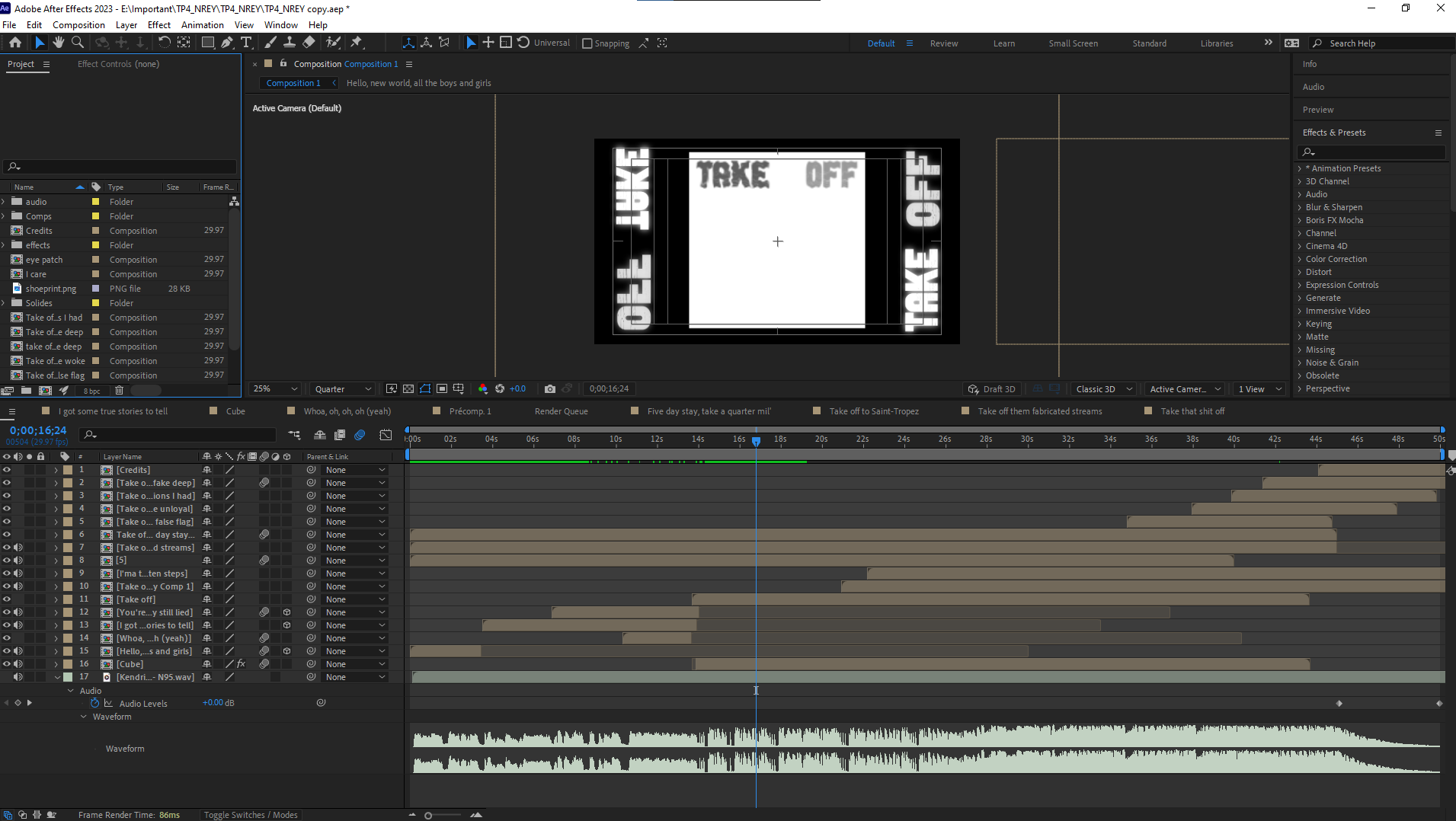 Ce projet à été réalisé dans le cadre du cour d'animation 2D de la technique d'intégration multimédia du cégep Édouard-Montpetit. Le but du projet était d'animer et de visualiser les paroles syncronisée d'une chansons au choix.